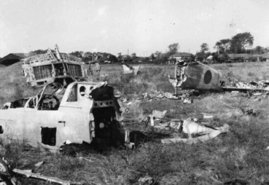 写真:戦闘機の残骸が散らばる成増飛行場(昭和20年)